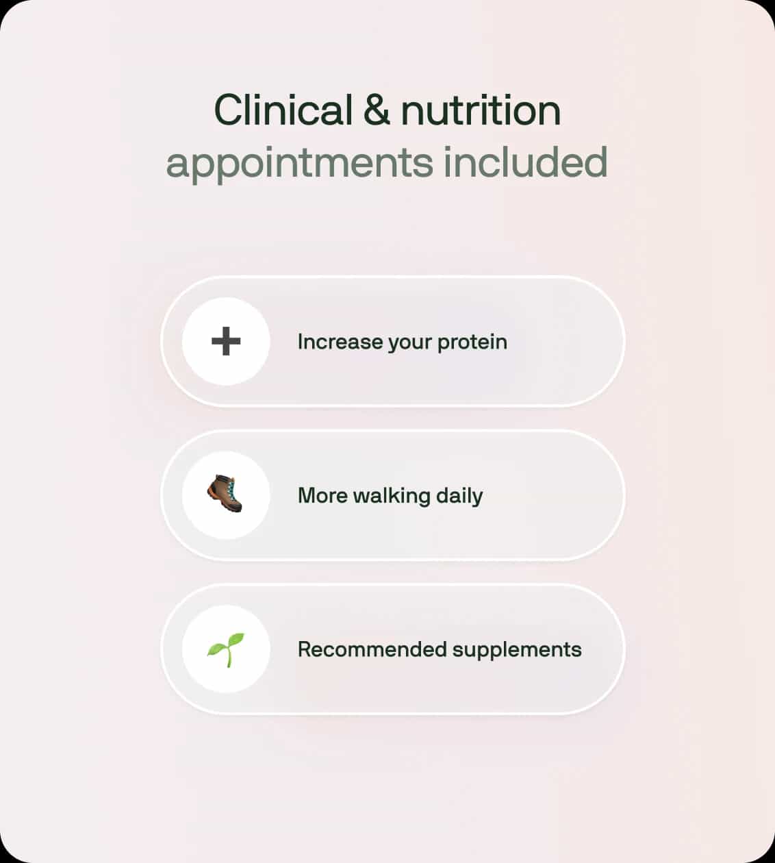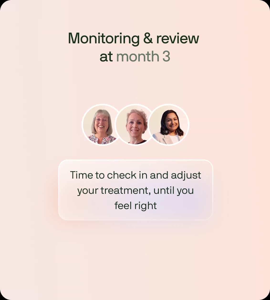 You’ll then have a 30-minute review at the end of month of your plan to discuss your test results, adjust your plan if needed and talk through how you’re feeling.
